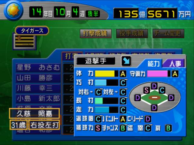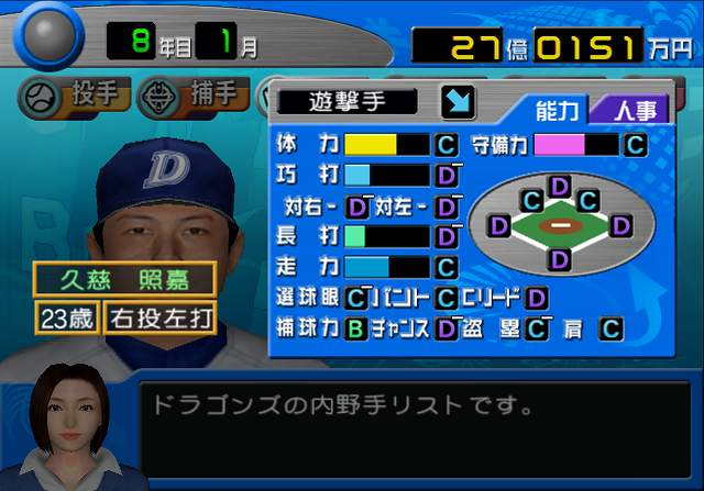 やきゅつく2003 選手名鑑 久慈照嘉 遊撃手 MUNEYAKE 2年前 成長 普通 衰え 普通 選手リストページへ 初期値 限界値 総合評価 初期で捕球Bという守備が魅力の守備型遊撃手。特に捕球力と守備適正は高いレベルにまで到達してくれるので、安定感という点では魅力的な部分が多い。 ただこういう選手にありがちな走力の魅力がなぜか欠如しているのでマジで使いにくい。守備固め以外の役割を持てない。巧打力も低いので多分一軍としての戦力を求めるのであれば、彼を獲得する必要はない。 小ネタ 関連項目 選手リストページへ